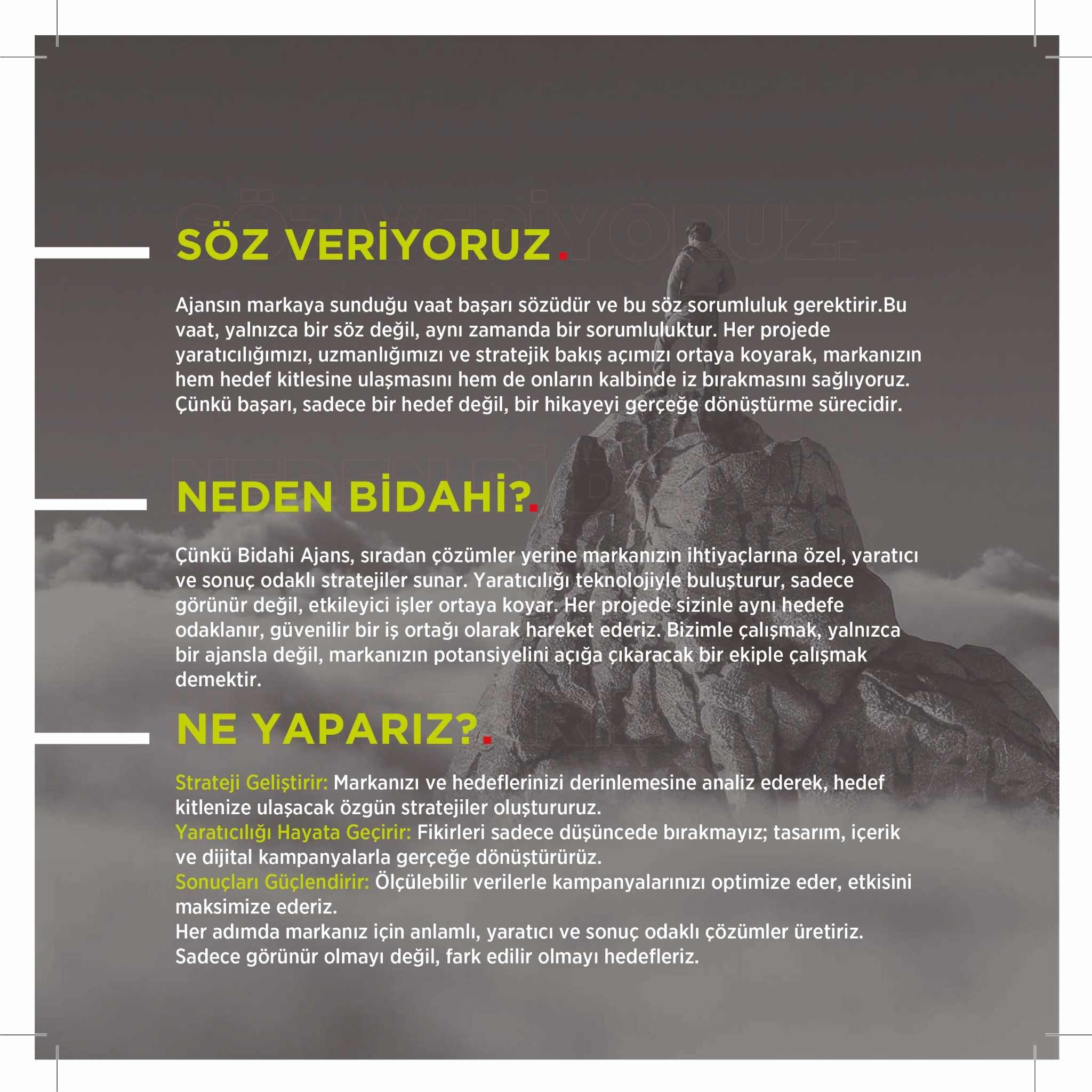 Bidahi, sıradan ajans kalıplarını reddeden bir yaratıcı güçtür.