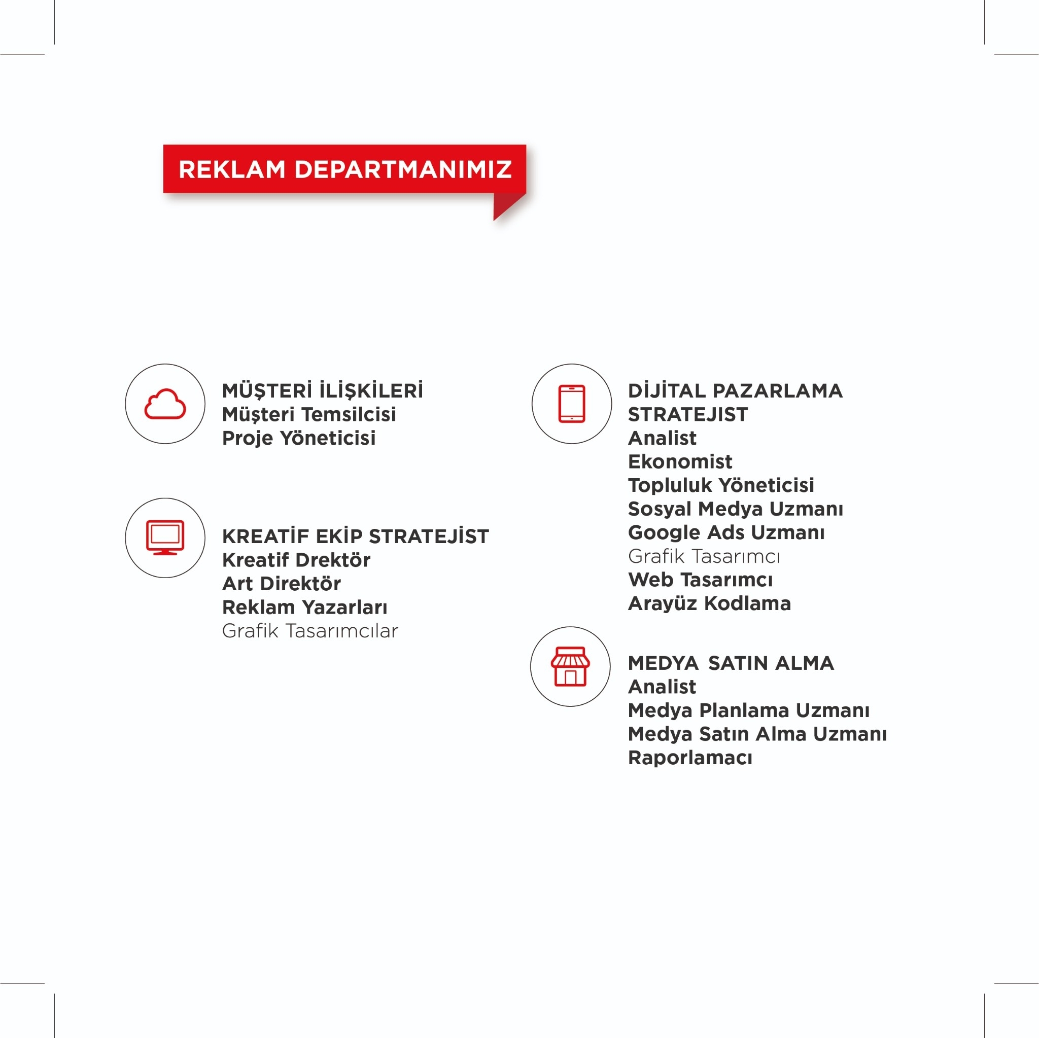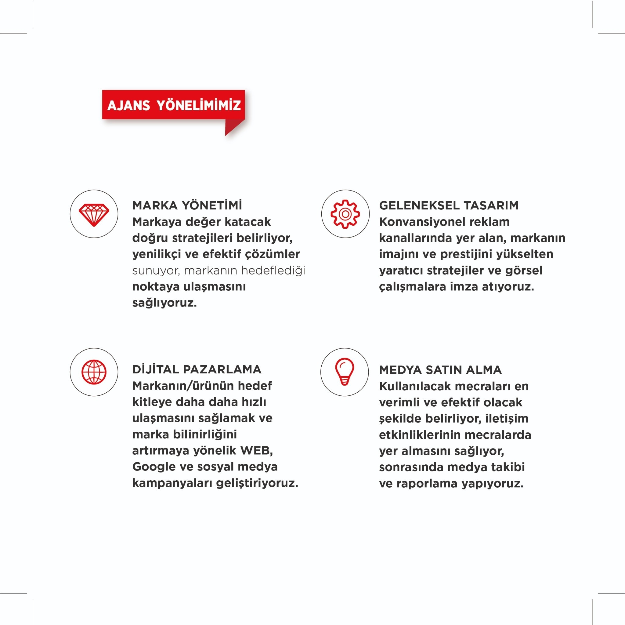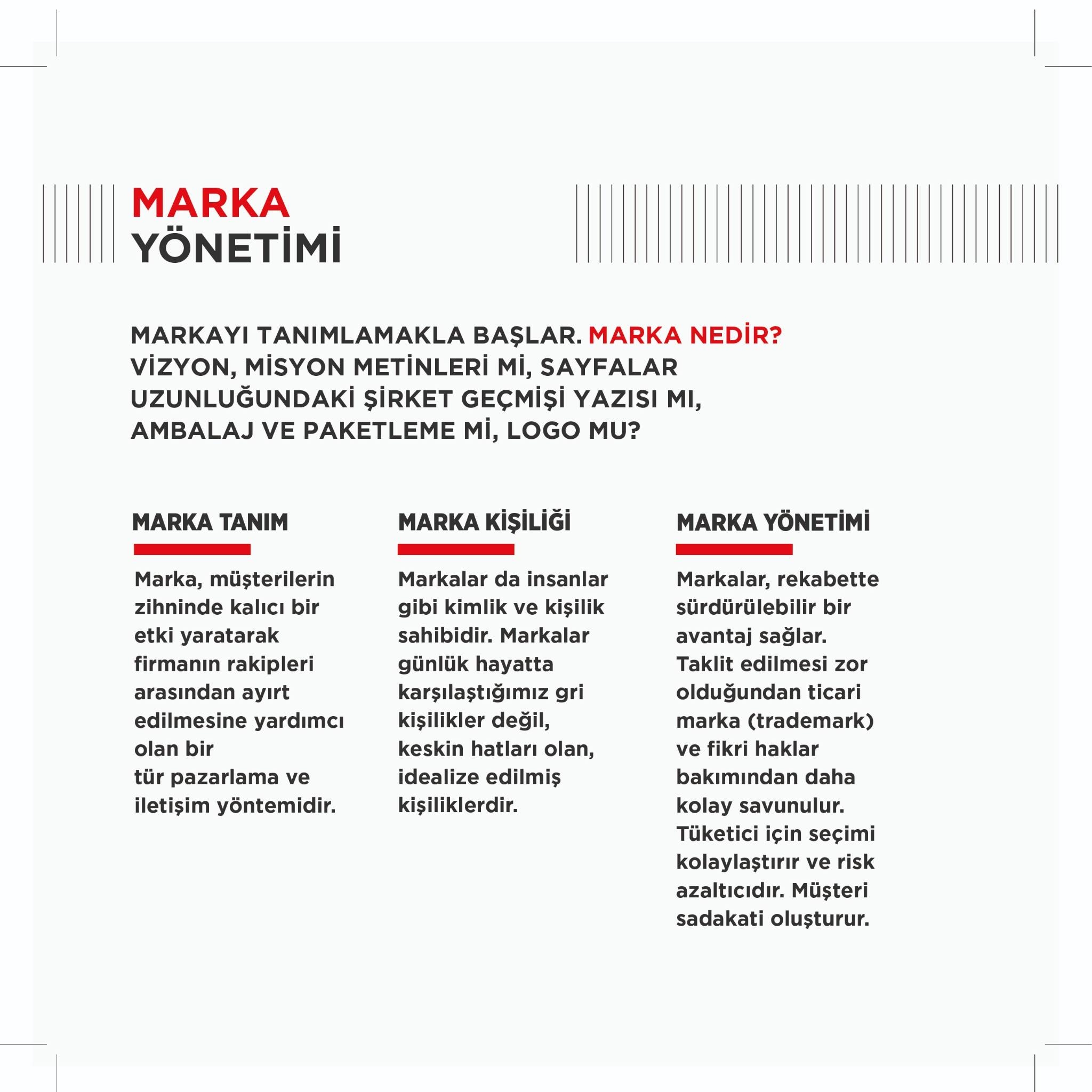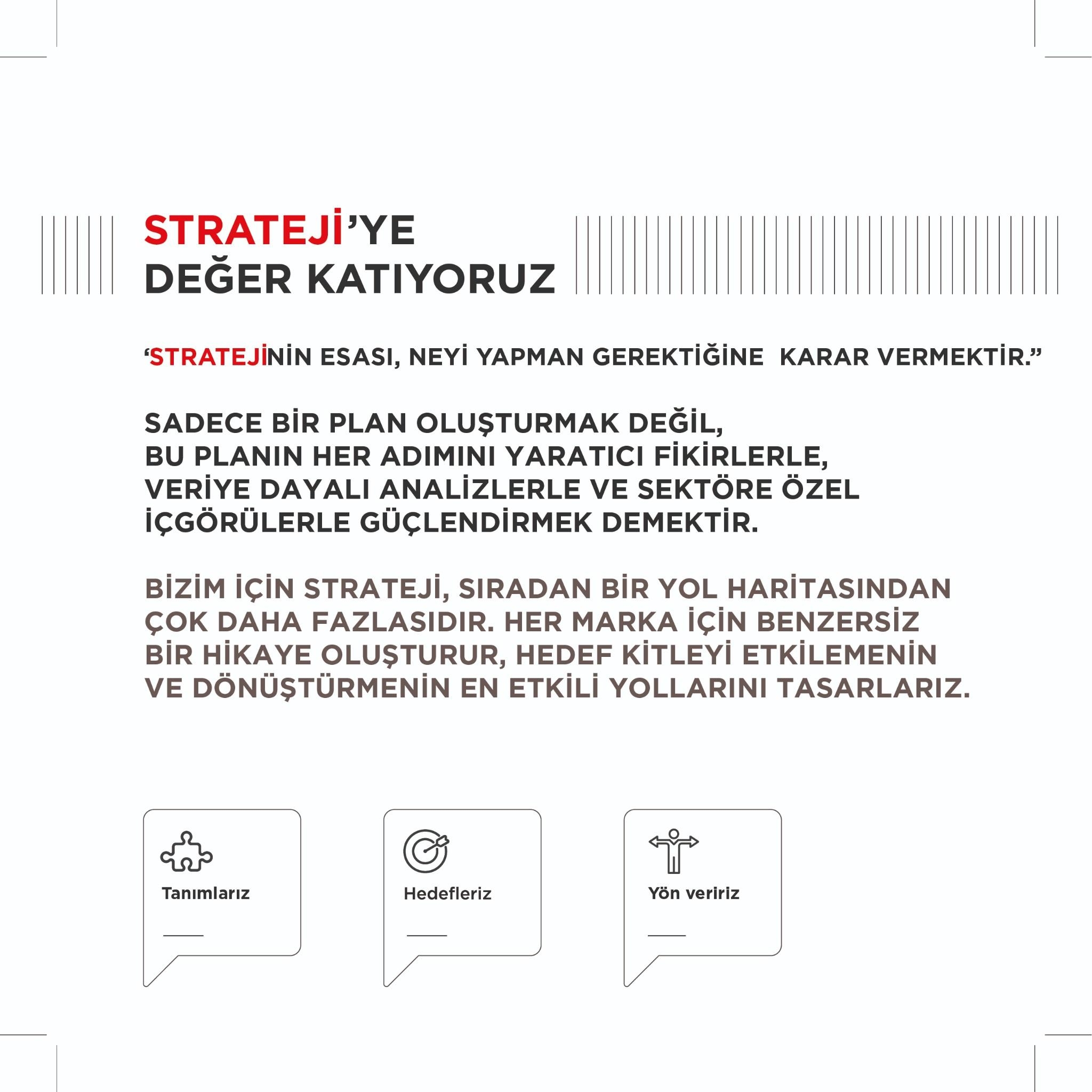 – Marka kimliğinizi oluşturur, konumlandırmanızı belirleriz.