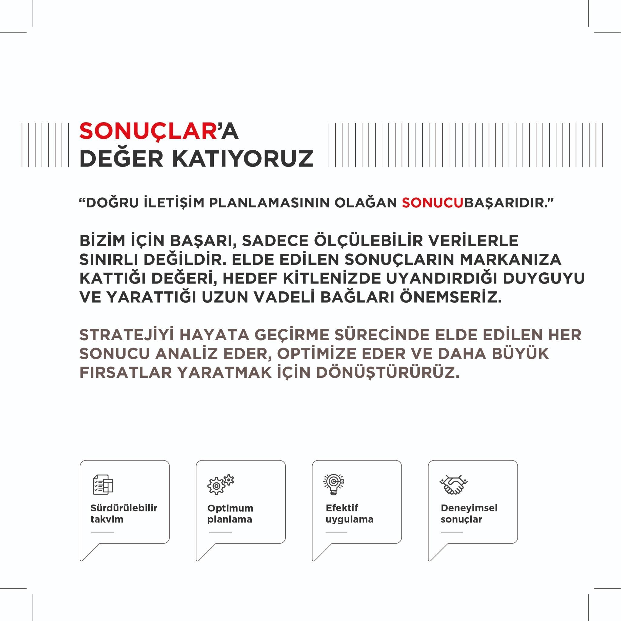 markalaşma, dijitalleşme ve iletişim alanında güçlü, tutarlı ve sürdürülebilir adımlar atmasına katkı sunmayı hedefliyoruz.